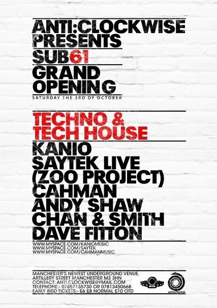 Anti:Clockwise presents the SUB61 Club opening party with KANIO & SAYTEK