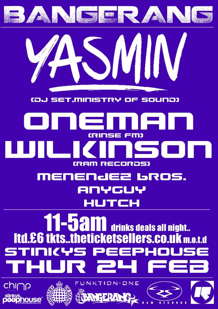 BANGERANG presents YASMIN, ONEMAN & WILKINSON // 24/02/2011