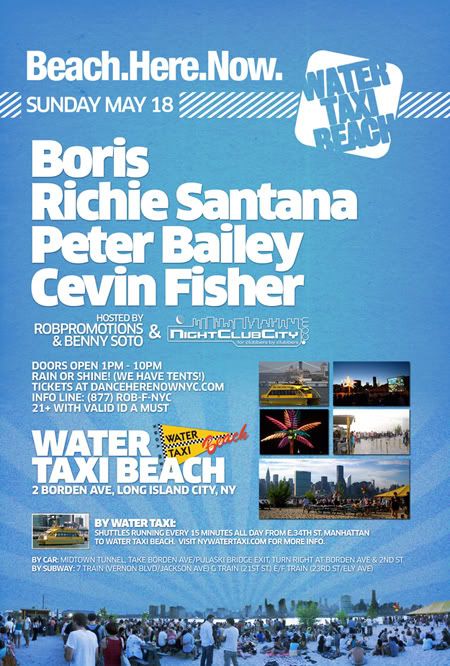 Currently Director of Booking & Promotions for monster Hell’s Kitchen superclub Pacha New York, Rob Fernandez is responsible for some of the most beloved DJ-focused parties in New York nightlife history, including Danny Tenaglia’s Be Yourself and Erick Morillo’s Subliminal Sessions. Cielo manager Benny Soto also promotes 718 Sessions, a monthly with DJ Danny Krivit, known locally as the heir apparent to dearly departed deep house party Body & Soul.About Water Taxi Beach