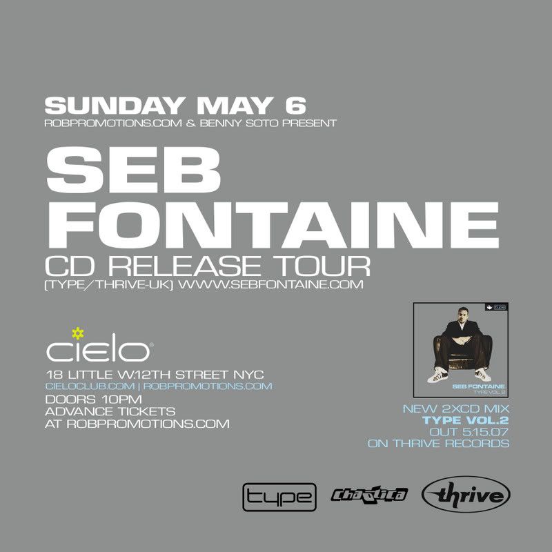 With a series of best-selling ‘Prototype’ mix CDs under his belt, four years on Radio 1’s legendary Saturday night slot, the first to be resident at both Cream and Ministry of Sound, as well as currently running one of London’s best club nights, Seb Fontaine clearly belongs among the elite of international DJs. Join us in celebrating the release of his newest cd “Type Vol.2”
