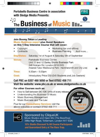 – Other unusual sources of money for Music Businesses and how to access them!Day/Dates: