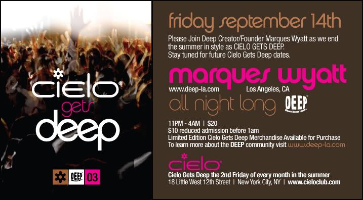 Please join DEEP creator/founder MARQUES WYATT as we end the summer in style as Cielo Gets Deep!