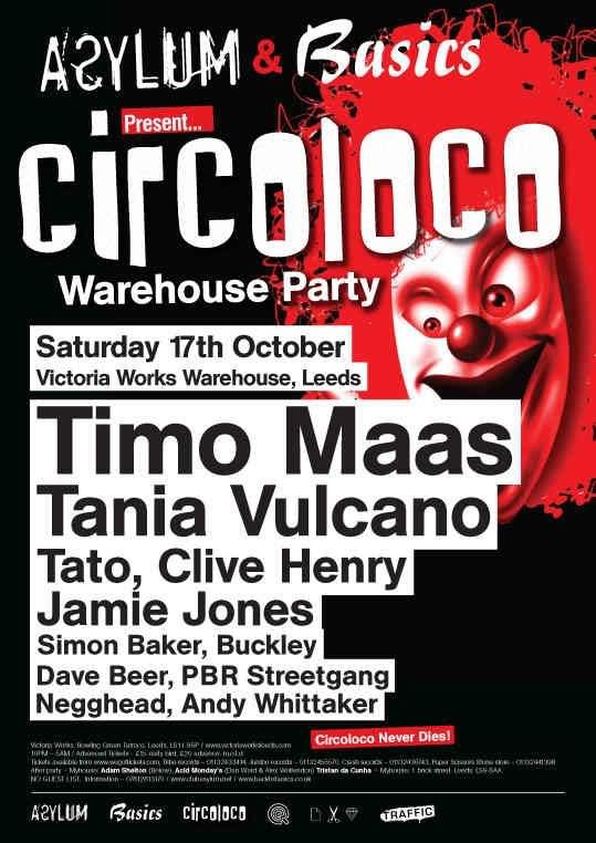 Circoloco rests its weary heads at none other than DC:10 in Ibiza, the now legendary; almost mythical club which hosts the infamous Monday day time parties. Since its inception, Circoloco has too developed into a global player on the dance music circuit and you can find its crew of residents playing at various parties across the globe. Fortunately for them they probably have the biggest list of underground Dj’s as residents on the planet including dj’s such as Luciano, Tania Vulcano, Ricardo Villilobos and plenty more who will be gracing our massive warehouse party in Leeds. And what about the line up for this seminal warehouse party in Leeds? Well, don’t say we don’t spoil you because we have invited Timo Mass, Tania Vulcano, Tato, Jamie Jones, Clive Henry, Simon Baker, Buckley, Dave Beer B2B Tom Thorpe, PBR Streetgang, Negghead and Andy Whitaker. Now that’s what I call a line-up!