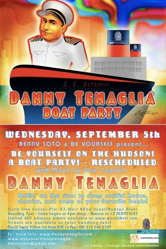 Danny Tenaglia Boat Party + Shelter Afterparty re-scheduled to Wednesday, Sep 5!