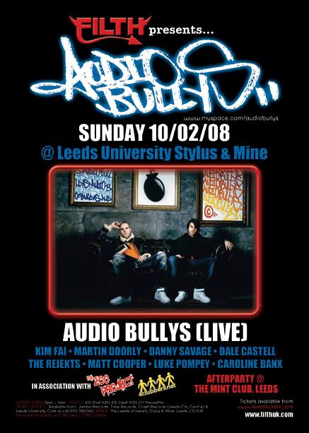 Joining the Audio Bullys Filth have also teamed up with the massive Zoo Project from Ibiza, local clubbing website 4 clubbers and new electro superstar Kim Fai. All come with a plan to cause absolute mayhem and play ear pleasing music for the clued up clubbers in Leeds.