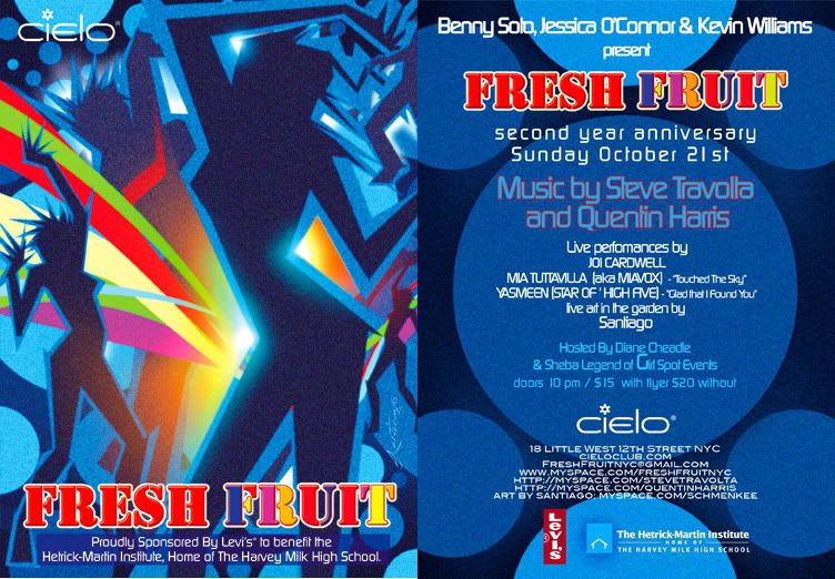 PLEASE support the ONLY LGBTQ public high school in America by joining Fresh Fruit Productions as they host their 2nd anniversary party and first monthly gay residency at CIELO nightclub on October 21st. DJs Steve Travolta and Quentin Harris spin the best in New York flavored House music all night long on Cielo’s stunning sound system. And if that’s not enough, Joi Cardwell (What It Feels Like, Club Lonely), Mia Tuttavilla (Touched The Sky) and breakout sensation Yasmeen (Glad I Found You) will be on hand to perform their chart topping hits. Proudly sponsored by Levi’s, a percentage of the proceeds will go to The Hetrick-Martin Institute to support the high school.