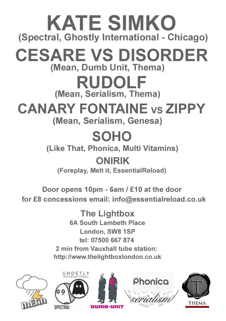 hybrid of refined house/techno beats with a forward thinking edge.SEND NAMES FOR CONCESSION AT: info@essentialreload.co.uk