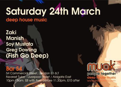 MUAK returns with special guest Greg Dowling Dj resident and producer for the phenomenal FISH GO DEEP, adding to the roster of internationally acclaimed artists that have been welcomed into the MUAK family, (which have to date included DJ Deep, Marques Wyatt, Franck Roger, Rocco Rodamaal, Knee Deep and Audiowhores amongst many others).