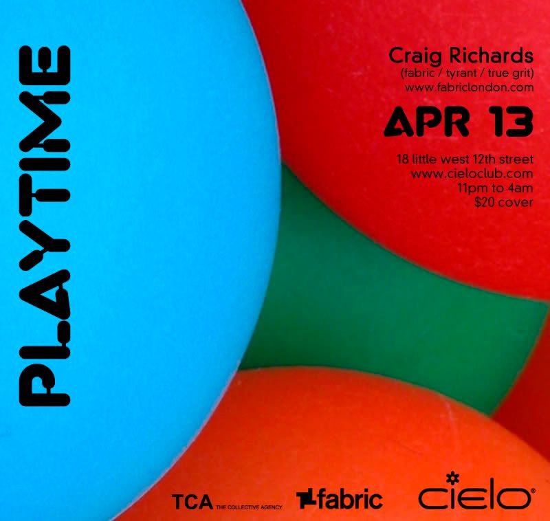 Playtime with Craig Richards (Fabric/Tyrant/True Grit) 11pm-4am, $20 Cover Charge