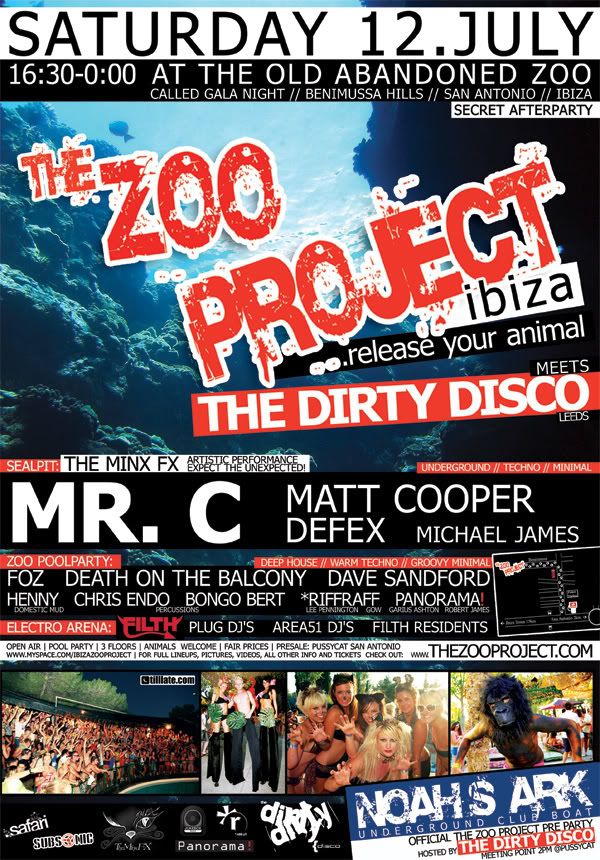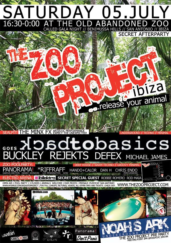 Most of you guys will be well acquainted with what we and I hope you think is one of the most exciting new venues and events on the island. The Zoo Project, the completely open air event, now has the reputation as one of the only underground parties that Ibiza has to offer, and we intend to keep it this way. With the incomparable crowd and the finest and most respected DJ’s in the world, we can only expect incredible things to happen from here… Set in an abandoned zoo, the spirits of the old inhabitants still live on in the hearts of everyone involved. It’s this raw animal magnetism that creates the unpredictable party atmosphere.