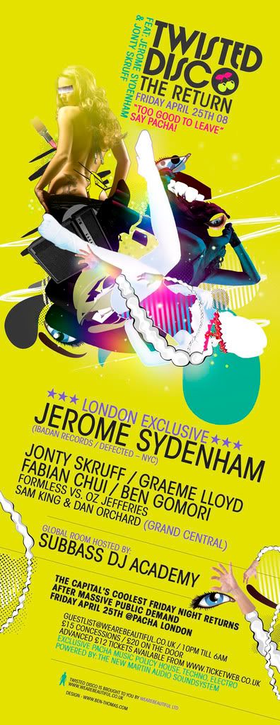 Well well well, what can we say! After such an amazing public response and a roadblocked farewell party The Twisted Disco is back and this time we’re not taking any prisoners! Over the next few months we will be progressively fine tuning and turbo charging the Twisted brand so look out for many exciting new changes first of which is our new superior music policy to fit London’s No.1 Club soundsystem so without further a do let me introduce to you the man they call Jerome Syndeham….