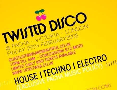 The Twisted Disco ‘An exciting concept in sound & light brought to you by the pioneers of the dance music underground and hosted by London’s most hedonistic and sexy night time glitterati’.